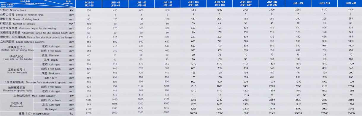 JH21采用液壓過載保護(hù)裝置,JF21采用鋼性保險器保護(hù)裝置,防止使用超載對機(jī)床造成損壞;